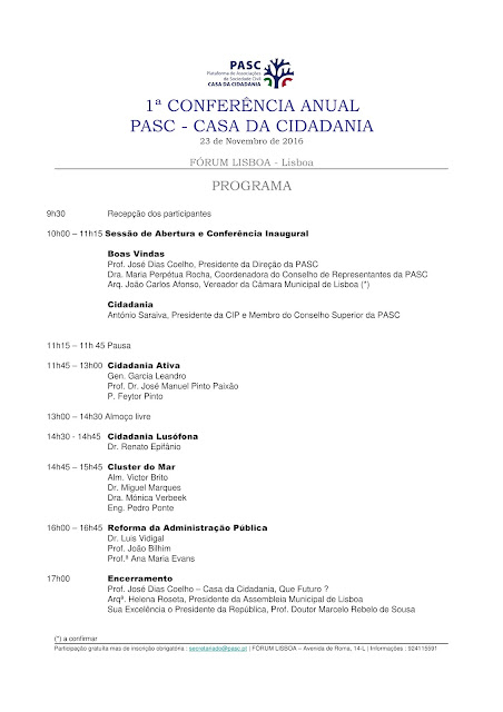 PASC- CASA DA CIDADANIA realiza no próximo dia 23 de Novembro conforme programa que abaixo divuçgamos, no Fórum