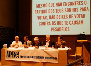 Decorreu no passado dia 19 de Setembro de 2015, no Auditório Camões em Lisboa, a sessão pública de encerramento da campanha “Uma volta pelo voto” que a APRe! promoveu, com o intuito de esclarecer os seus associados e simpatizantes sobre várias questões político-económicas, decorrentes dos programas dos partidos que concorrem às Eleições Legislativas 2015, cujo esclarecimento é de relevante importância para a decisão que é necessário o eleitor tomar no acto de votar.