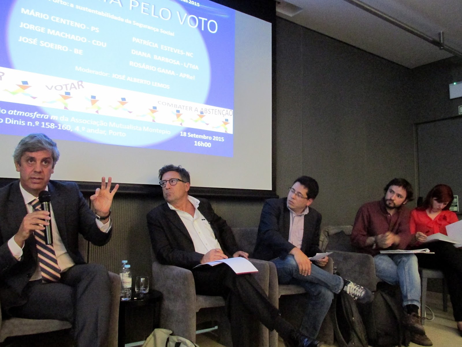 A primeira intervenção foi a de Maria Rosário Gama, que fez um apelo ao voto, explicando o seu significado e importância. Aludiu ao nosso ‘Caderno Reivindicativo’ e às diligências da APRe! – que o apresentou aos partidos, em encontros previamente requeridos para o efeito. Partilhou a sua consternação pelo que se está a passar na EU, com a crise dos refugiados. No fim, agradeceu aos presentes a sua colaboração.