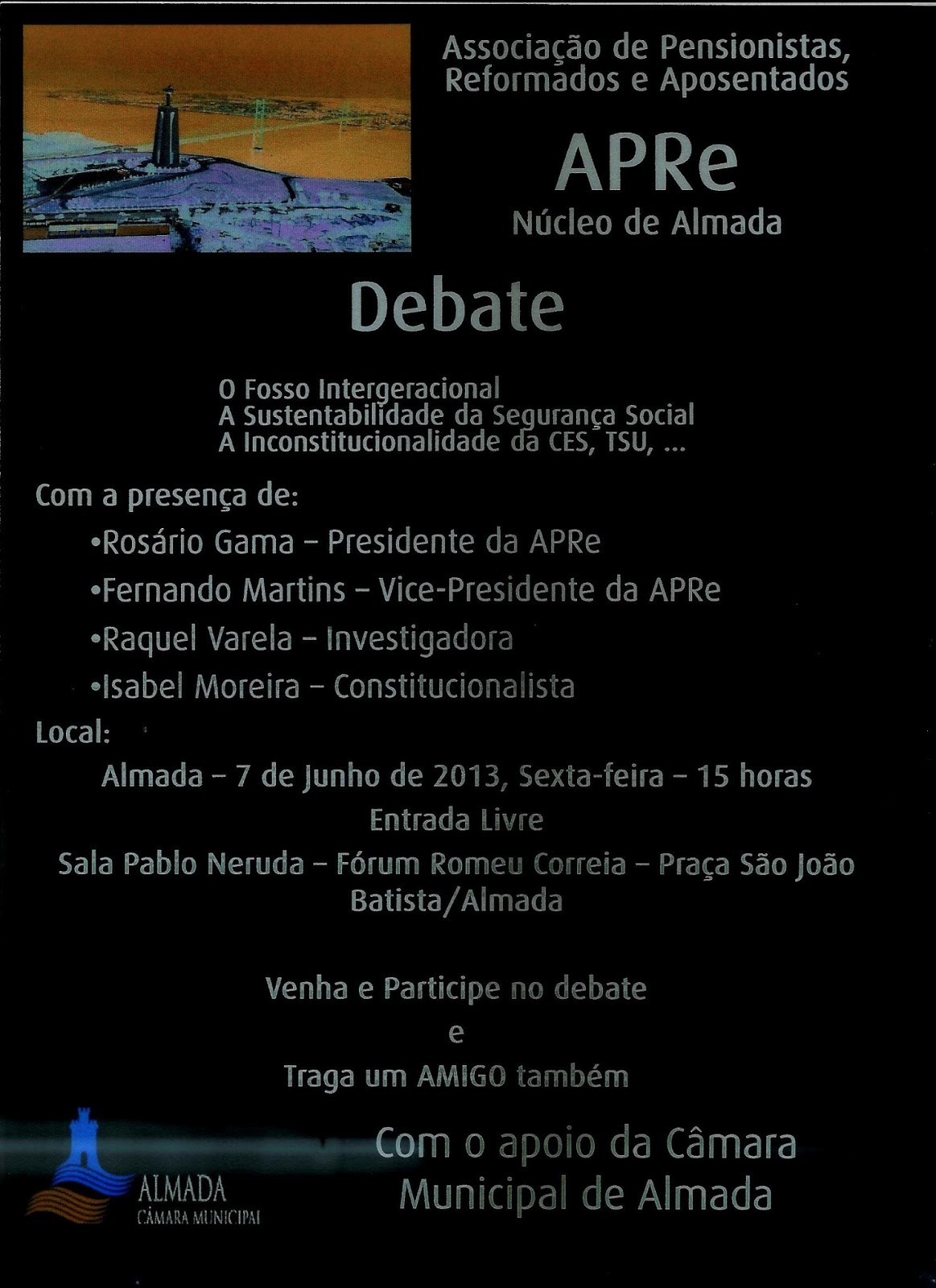 No dia 7, em Almada, na Sala Pablo Neruda do Forum Romeu Correia, realizou-se uma excelente sessão de divulgação da APRe! que proporcionou um vivo e participado debate sobre matérias de grande importância na situação política actual.